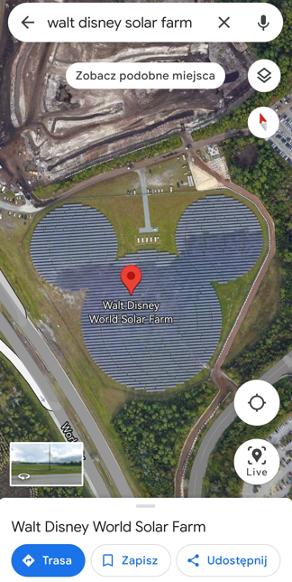Jak się okazuje fotowoltaika nie zawsze ma jedynie zastosowanie praktyczne. Tak wygląda farma fotowoltaiczna w Disneylandzie w Orlando na Florydzie.