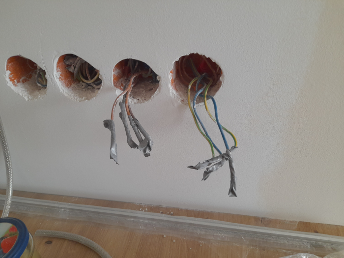 -tam gdzie trzy, bądź cztery żyły to można się domyślać, że w przypadku trzech to łącznik jednobiegunowy powinien być zainstalowany, natomiast gdzie cztery żyły to łącznik świecznikowy (np. żyrandol 1+2;2+3)