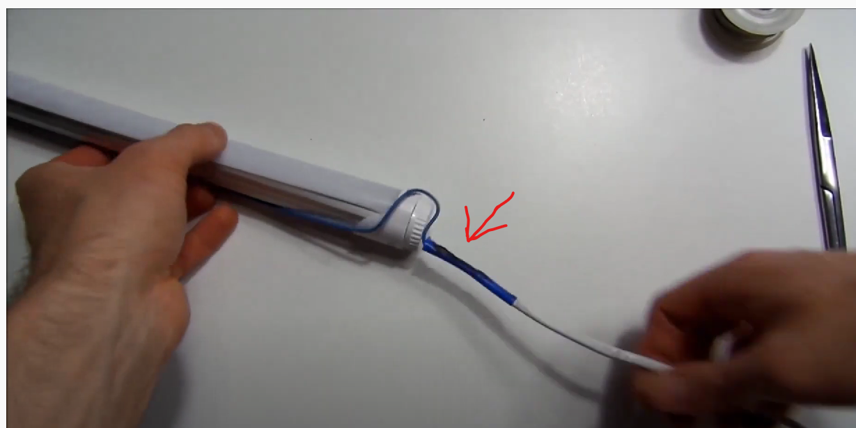 @artel electric: Moja lampa ma dwa bolce, a u niego jakby ich nie miała. Poza tym z "głównego" przewodu wychodzi mniejszy, który idzie na koniec lampy. Co on tutaj zrobił? Połączył jeden niebieski z dwoma niebieskimi, tak jak to zrobił w 19:49 i poprowadził jeden niebieski na koniec lampy? Gdybym zrobił tak samo, ale tylko jeden bolec z obu stron byłby podpięty, to by to zadziałało?
