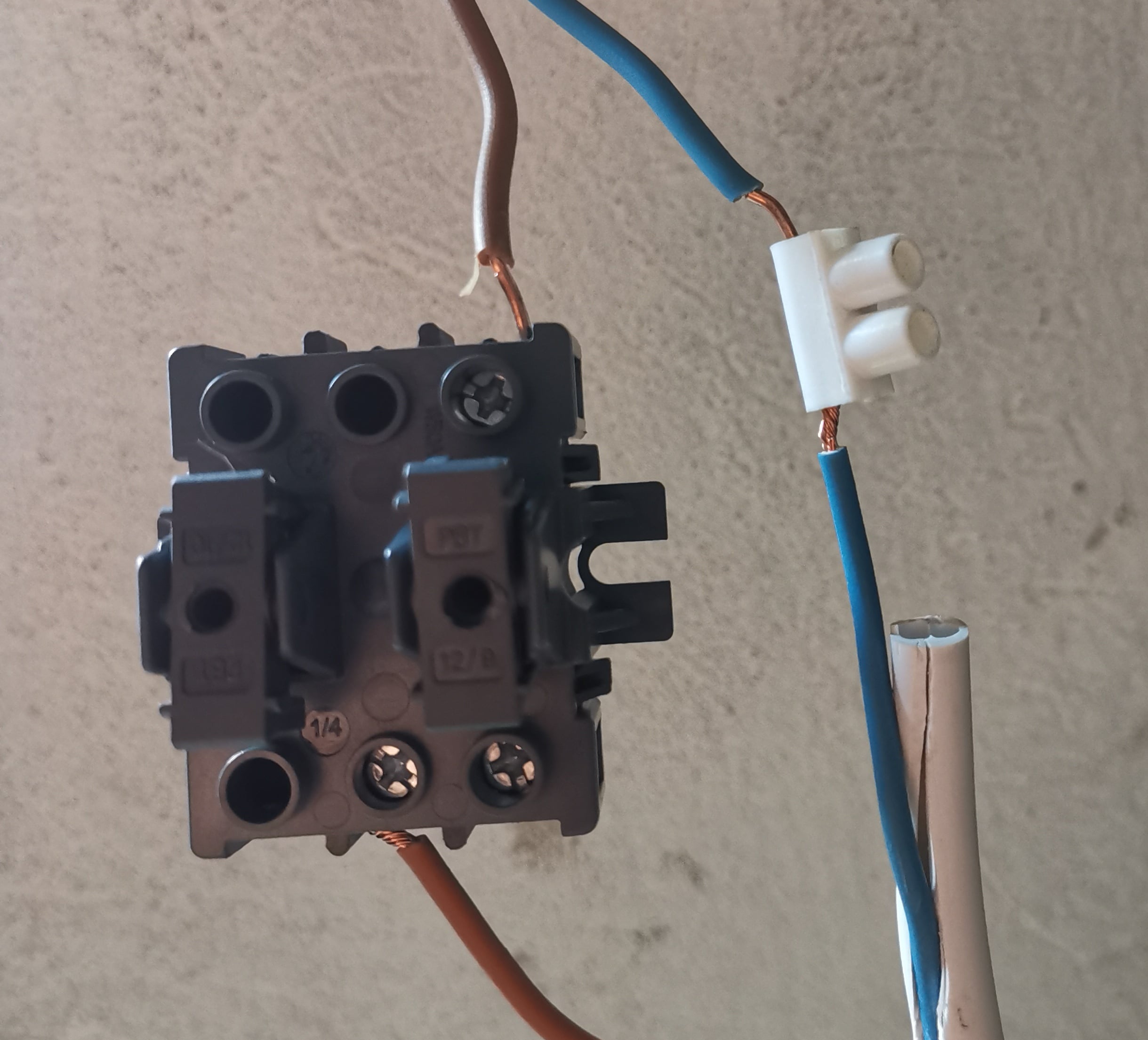 Elektryk też zostawił podłączony przewód do wyłącznika oświetlenia, oczywiście wszystko zabezpieczone.