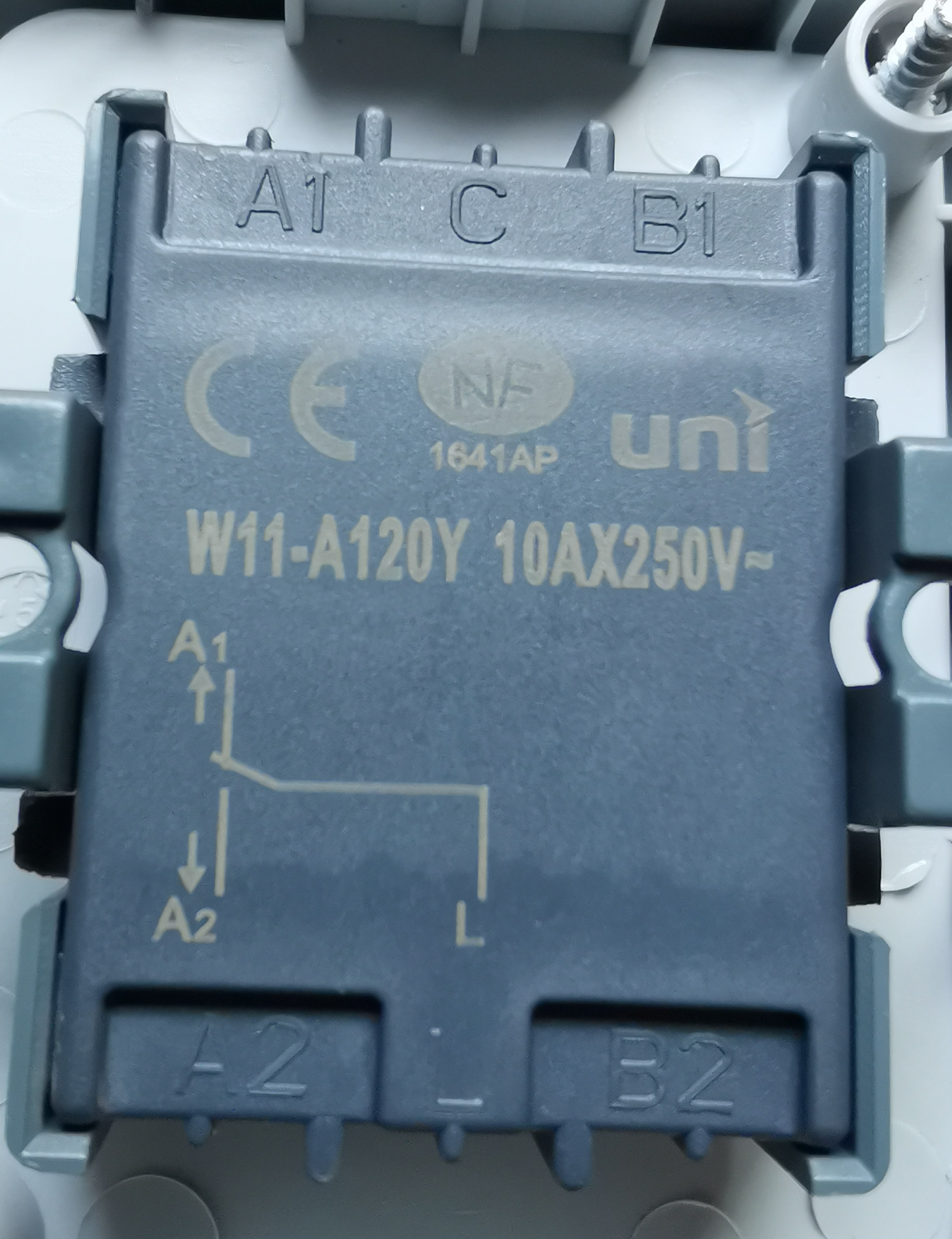 Na schemacie włącznika L u dołu oznacza zasilanie, a zaciski A1 A2 - wyjście na lampę.