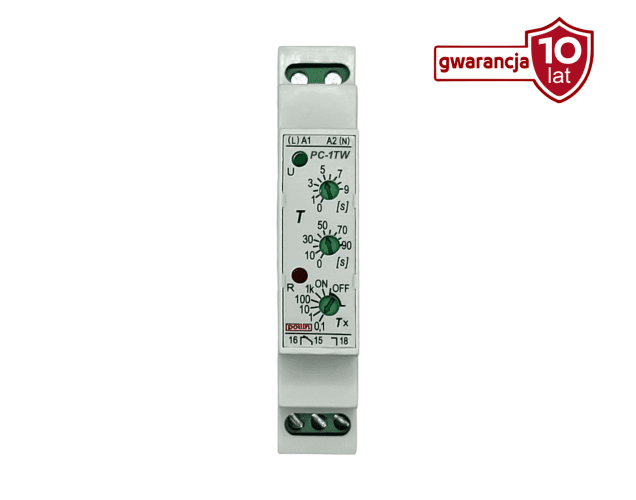 - PC-1TW - obwód zostaje załączony od razu, a przekaźnik odlicza czas ⏱️ (0,1s - 27h 30m) do jego wyłączenia.