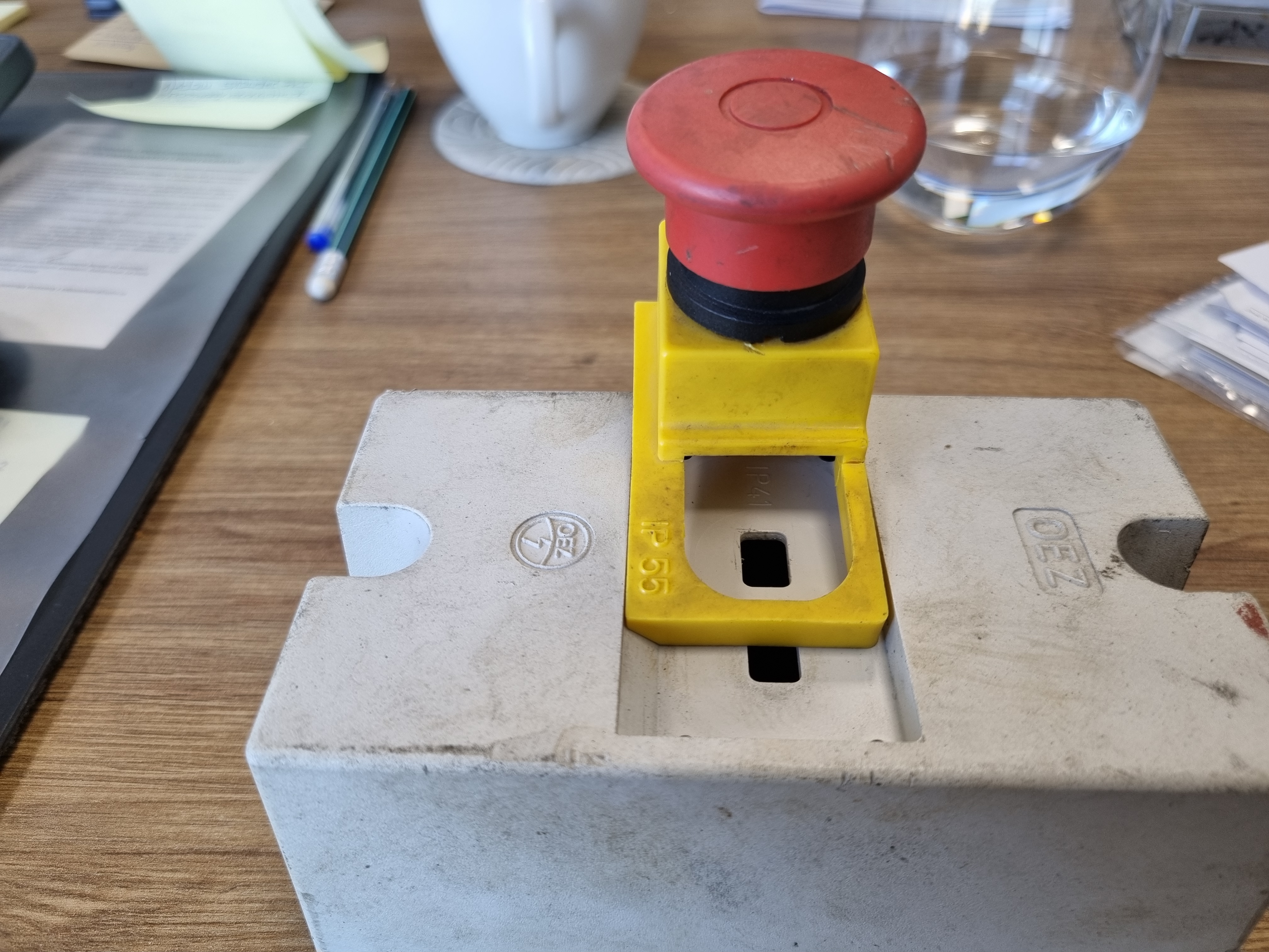 Potrzebuję przycisk awaryjny żółto czerwony produkcji OEZ, niestety dysponuję tylko zdjęciem.