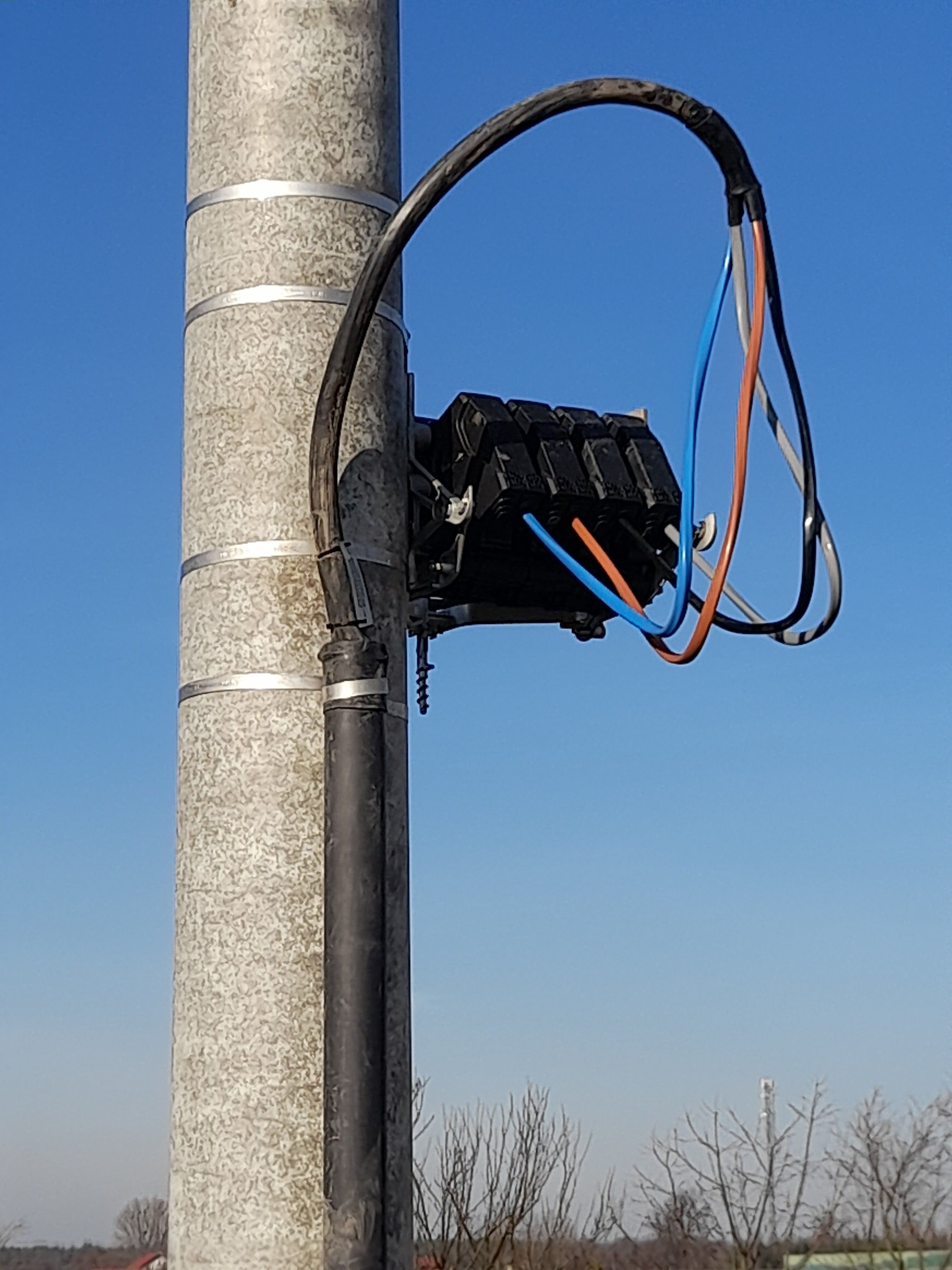 Rozłącznik 4-biegunowy na słupie w jednej z podłódzkich wsi. W Łodzi i w okolicy jest tylko TN-C. Na tej samej linii napowietrznej trochę dalej od trafo jest kolejny rozłącznik, ale tym razem 3-biegunowy. Jeszcze dalej kilka 3- lub 4- biegunowych. Taka dowolność jest spotykana we wszystkich podłódzkich wsiach. Na obrzeżach miasta są tylko 3-bieg. Kilka info od spotkanych ekip ZE: nie wiem dlaczego / ja jestem tylko od trafo / dali 4 x bo takie mieli w magazynie. Takie rozwiązanie oczywiście przeczy zasadzie = nie stosujemy łącznika w żyle PEN. Co społeczność na to ? Sieci są mi całkowicie obcym tematem.