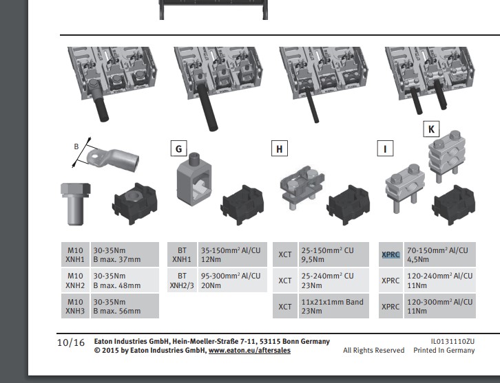 Rozłącznik XNH00‑S160‑BT1 183034 - czy można do niego wpiąć kabel 90mm2