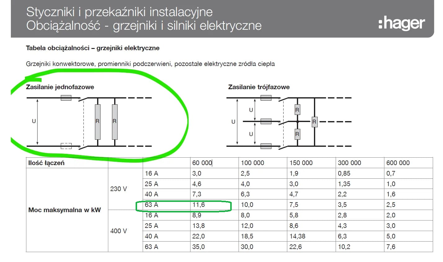 chciałem skonsultować podpięcie grzejników (rezystancyjnych) jedno fazowych przez stycznik taryfowy Hagera ETC363 3NO. Normalnie puściłbym przez ten stycznik 3 fazy podzielone na kilka grzejniczków, ale w katalogu hagera znalazłem taki schemat, stycznik ma rozłączać też Nkę??