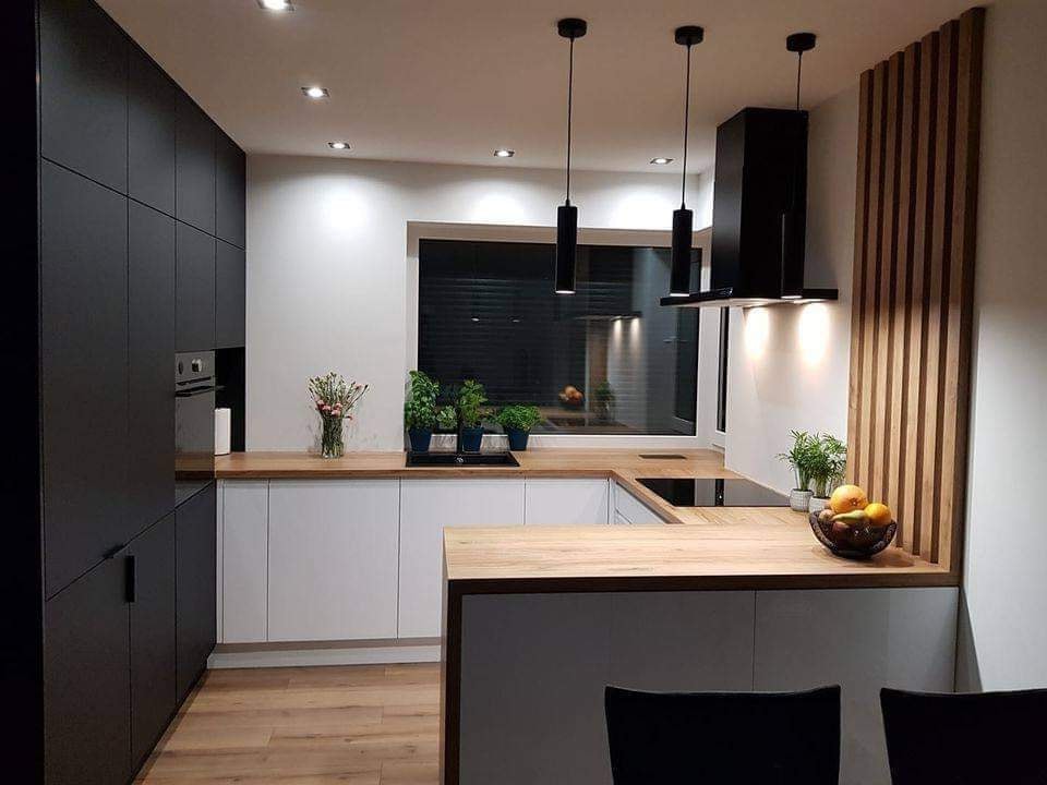 Szafki będą czarne tak? W takim razie myślę że uchwyty tego samego koloru to najbezpieczniejszy wybór. Ewentualnie matowe złote mogą się ladnie komponować z drewnianym blatem.