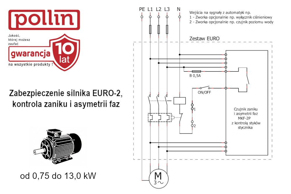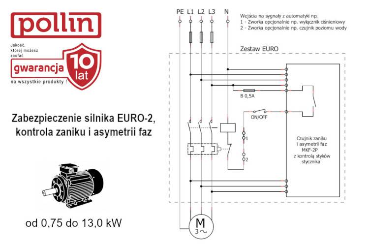 Zestaw EURO-2 to sprawdzone, niezawodne i nowoczesne rozwiązanie dla instalatorów, którzy chcą szybko i skutecznie zabezpieczyć silnik trójfazowy w instalacjach domowych, przemysłowych, rolniczych itp.
