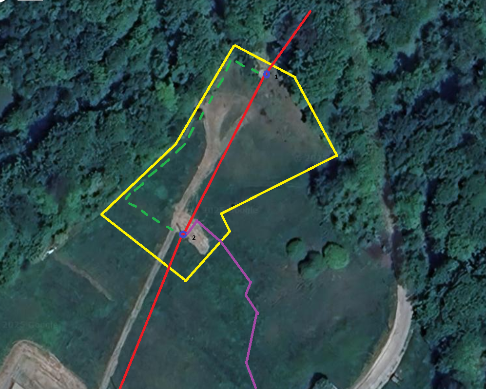 Natknąłem się na którymś z forów na wpis że jeśli przebieg linii ogranicza w znacznym stopniu możliwość zabudowy to powinni się tym zająć. Oczywiście sami tego nie zrobią i trzeba z tym się zwrócić do zakładu energetycznego. Nie potrafię znaleźć już tego wpisu by dopytać o szczegóły. Jest jeszcze za wcześnie na wszelkie pisma, sama działka będzie wytyczona z jednej większej. Sama linia nN ta o której piszę zasila 10 gospodarstw domowych, a sama zmiana dotyczyła by tylko i wyłącznie zmiany trasy mieszczącej się na jednej działce. Taką teoretyczną zmianę zaznaczyłem przerywaną linia zieloną.